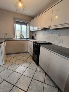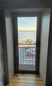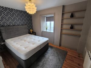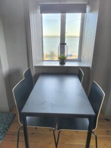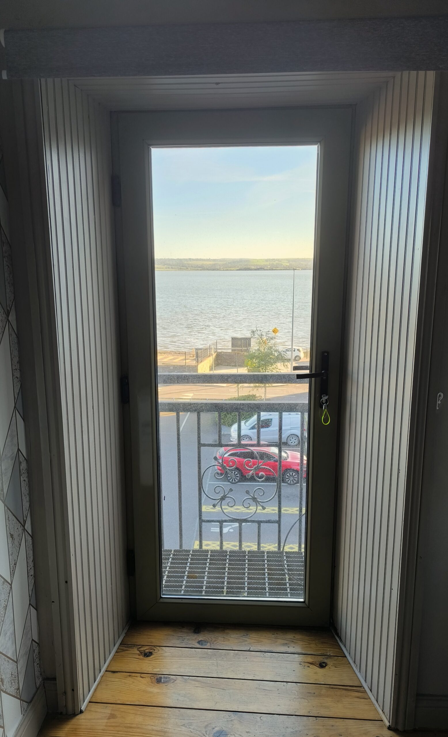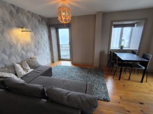 The apartment has dual aspect windows facing east and south in the living area which features a stylish kitchen and upgraded radiators whilst having views over Youghal Bay & a juliette balcony.