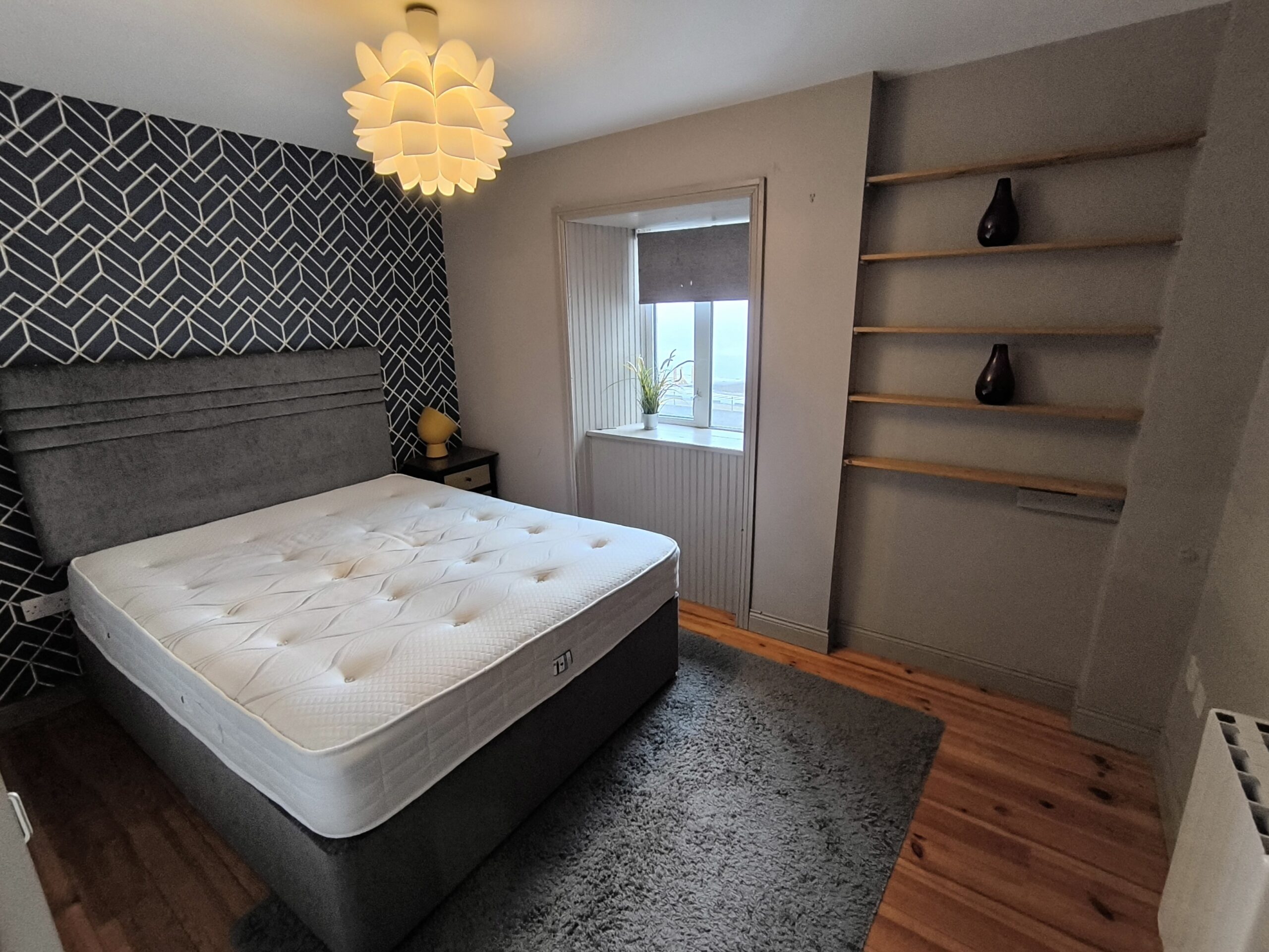 The large bedroom also features sea views and has an inbuilt wardrobe.